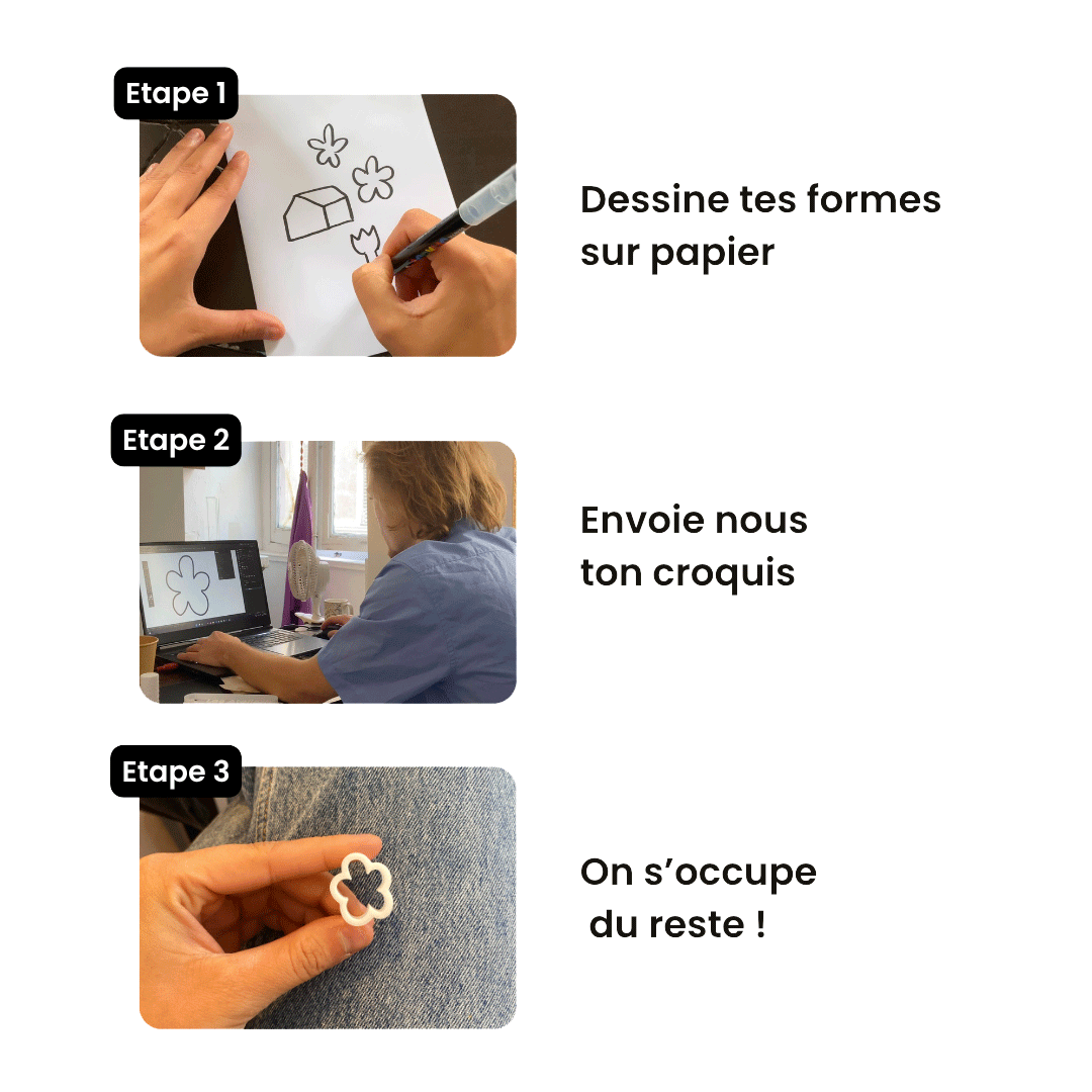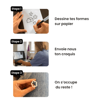 Dès que tu passes commande, sur la fiche produit tu as un encadré pour uploader ton croquis (photo, dessin ou fichier numérique).