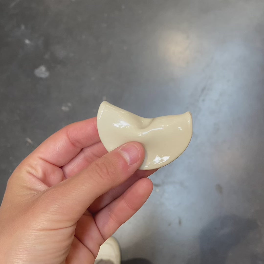 Ces petits fortune cookies en céramique sont entièrement faits et peints à la main dans mon atelier à Lyon.